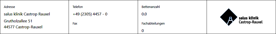 Ein modernes Gebäude und eine entsprechend gute Ausstattung, die einen angenehmen Aufenthalt in der salus Klinik Castrop-Rauxel ermöglichen sollen sowie ein Mitarbeiterstab qualifizierter Fachkräfte, die sich der Problemlagen unserer Rehabilitandinnen und Rehabilitanden kompetent widmen sind gute Gründe eine Behandlung bei uns in Anspruch zu nehmen. Darüber hinaus lässt sich ein Eindruck unserer Arbeit sicher am Besten über unsere Grundhaltung, die im Leitbild zusammengefasst ist und die Beschreibung der konkreten Angebote vermitteln. Unter dem Punkt Indikationen finden Sie Informationen darüber, welches Behandlungsspektrum wir abdecken und auf welche Problemlagen wir uns spezialisiert haben. Sollten Sie sich mit Ihrer persönlichen Lebenslage hier nicht wiederfinden, treten Sie einfach mit uns persönlich in Kontakt, um offene Fragen zu klären. Im Bereich Therapieangebot bieten wir einen Überblick hinsichtlich der verschiedenen Maßnahmen und Therapiemodule, die während der Behandlung in der salus klinik Castrop-Rauxel, abhängig vom individuellen Bedarf, genutzt werden können.